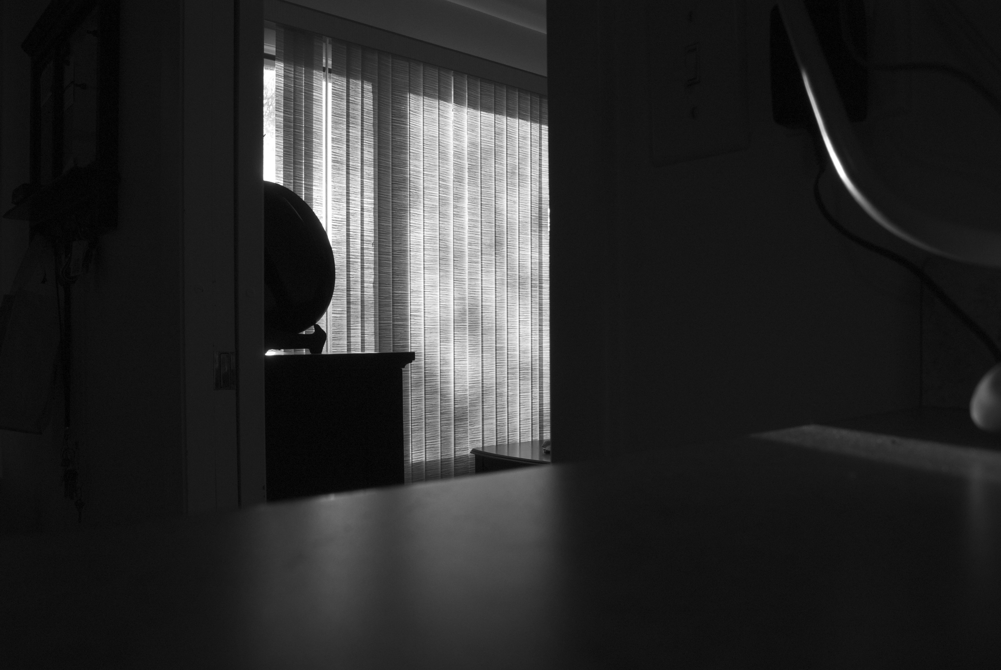 Evening washes the room gray. My eyes cannot adjust; details fade like memories. Darkness brings its own weariness. I wear it like a cloak or shroud. I am too tired to go further. I long to hibernate, to crawl inside the barren night, and sleep and sleep and sleep.